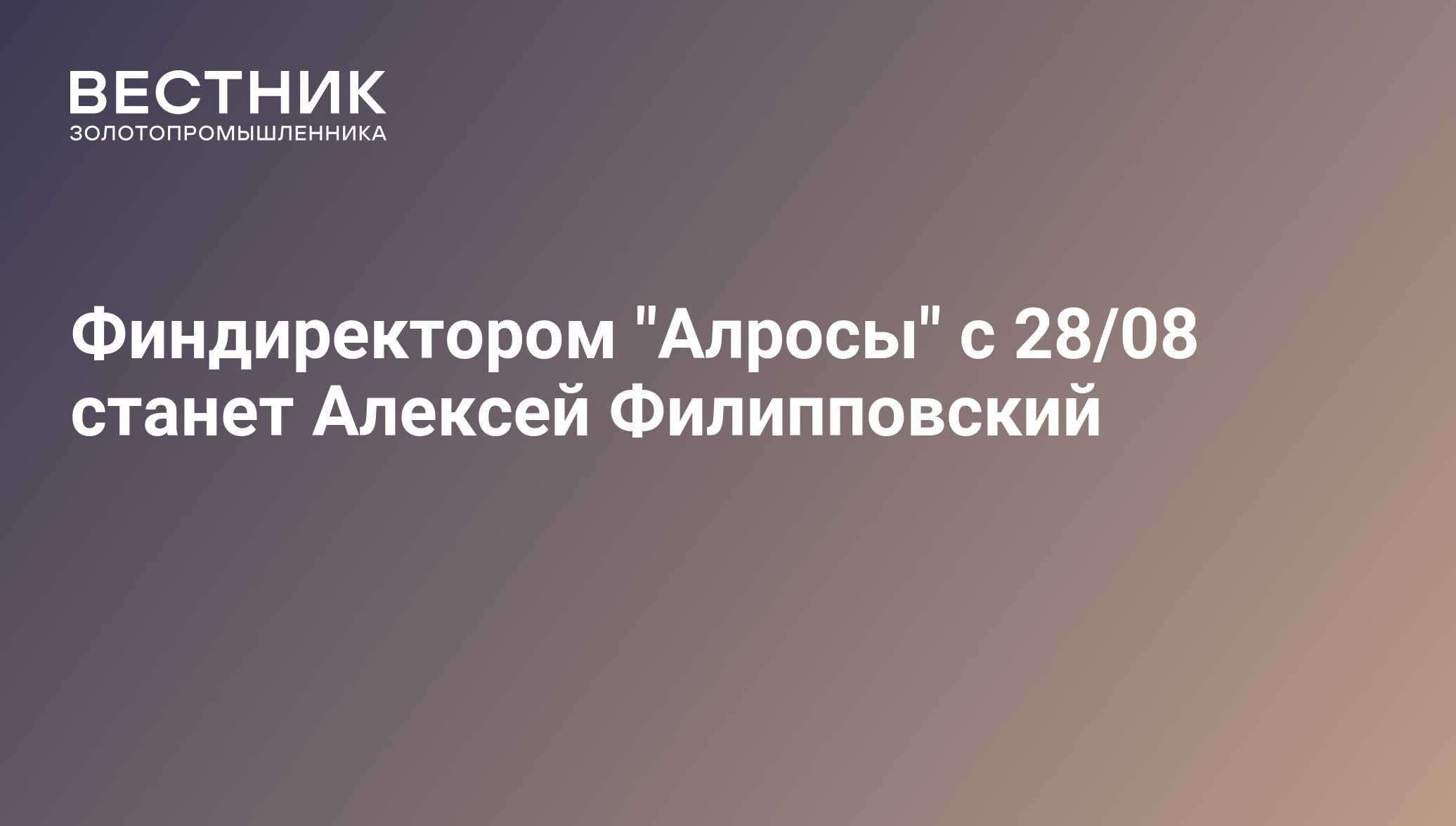 Финдиректором "Алросы" с 28/08 станет Алексей Филипповский - 10.08.2017, ПРАЙМ ЗОЛОТО