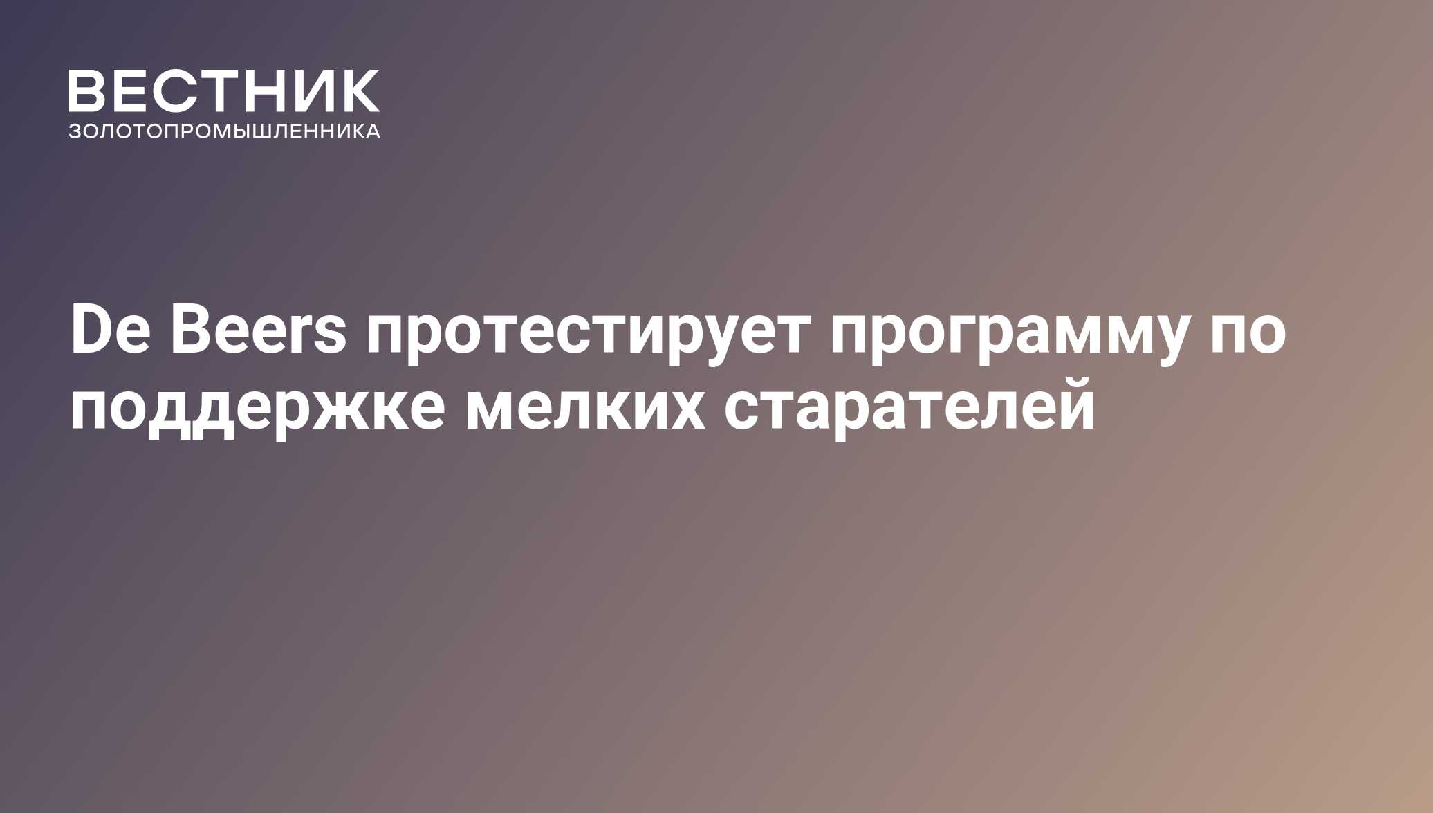 De Beers протестирует программу по поддержке мелких старателей - 19.04.2018, ПРАЙМ ЗОЛОТО