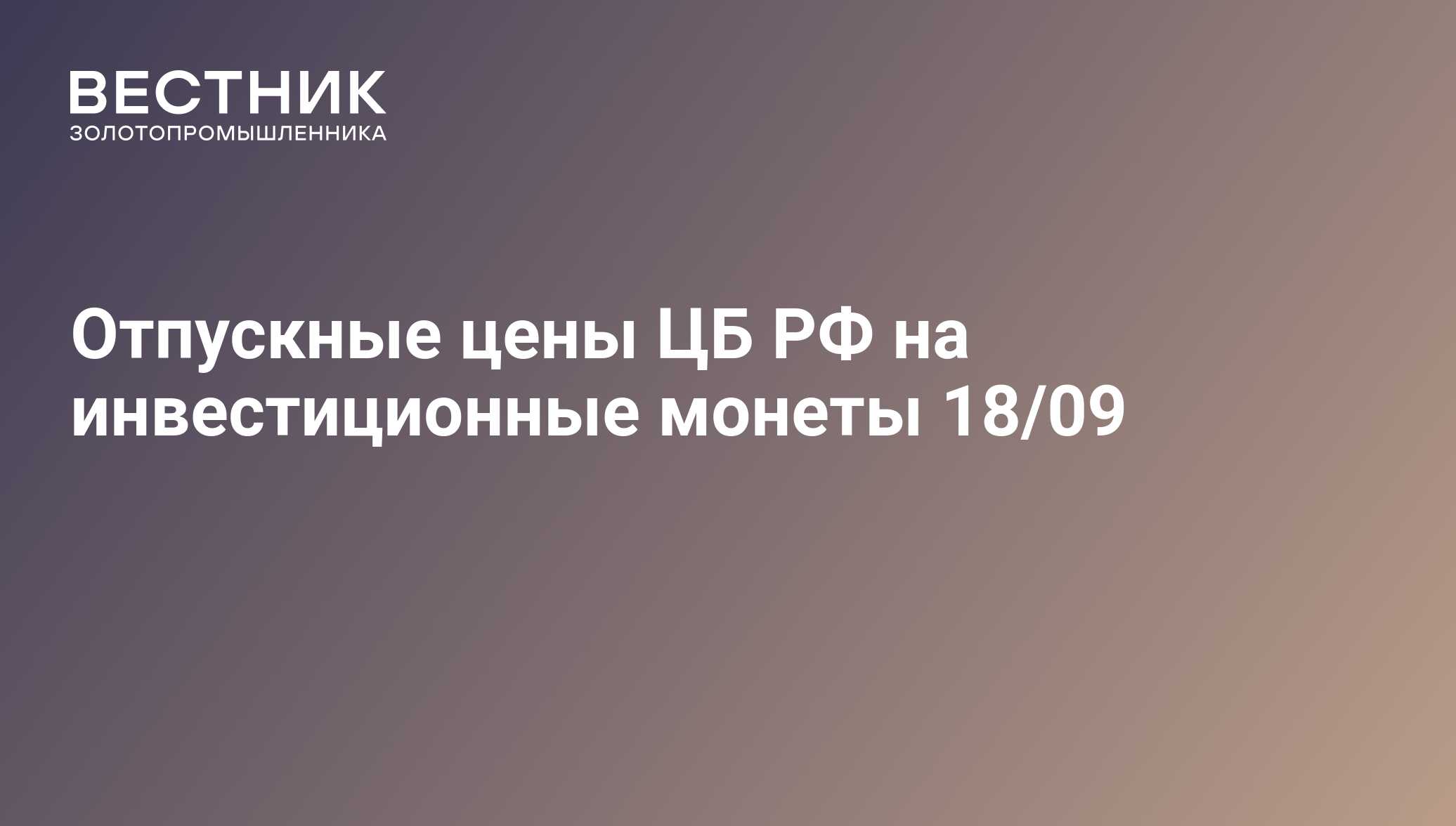 Отпускные цены ЦБ РФ на инвестиционные монеты 18/09