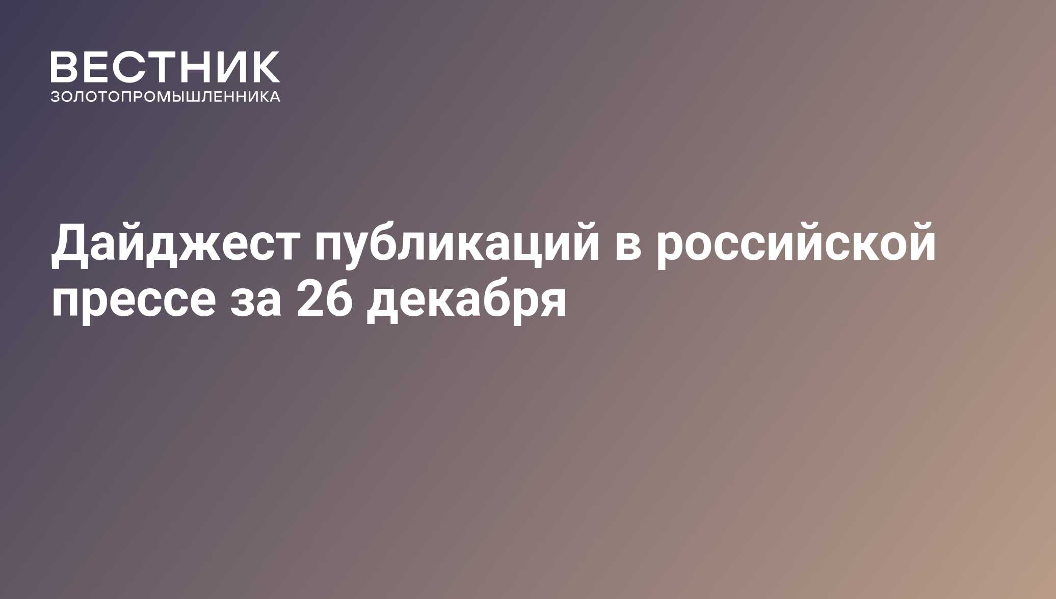 Дайджест публикаций в российской прессе за 26 декабря - 26.12.2019, ПРАЙМ ЗОЛОТО