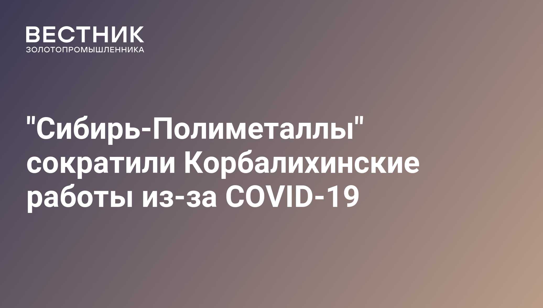 "Сибирь-Полиметаллы" сократили Корбалихинские работы из-за COVID-19