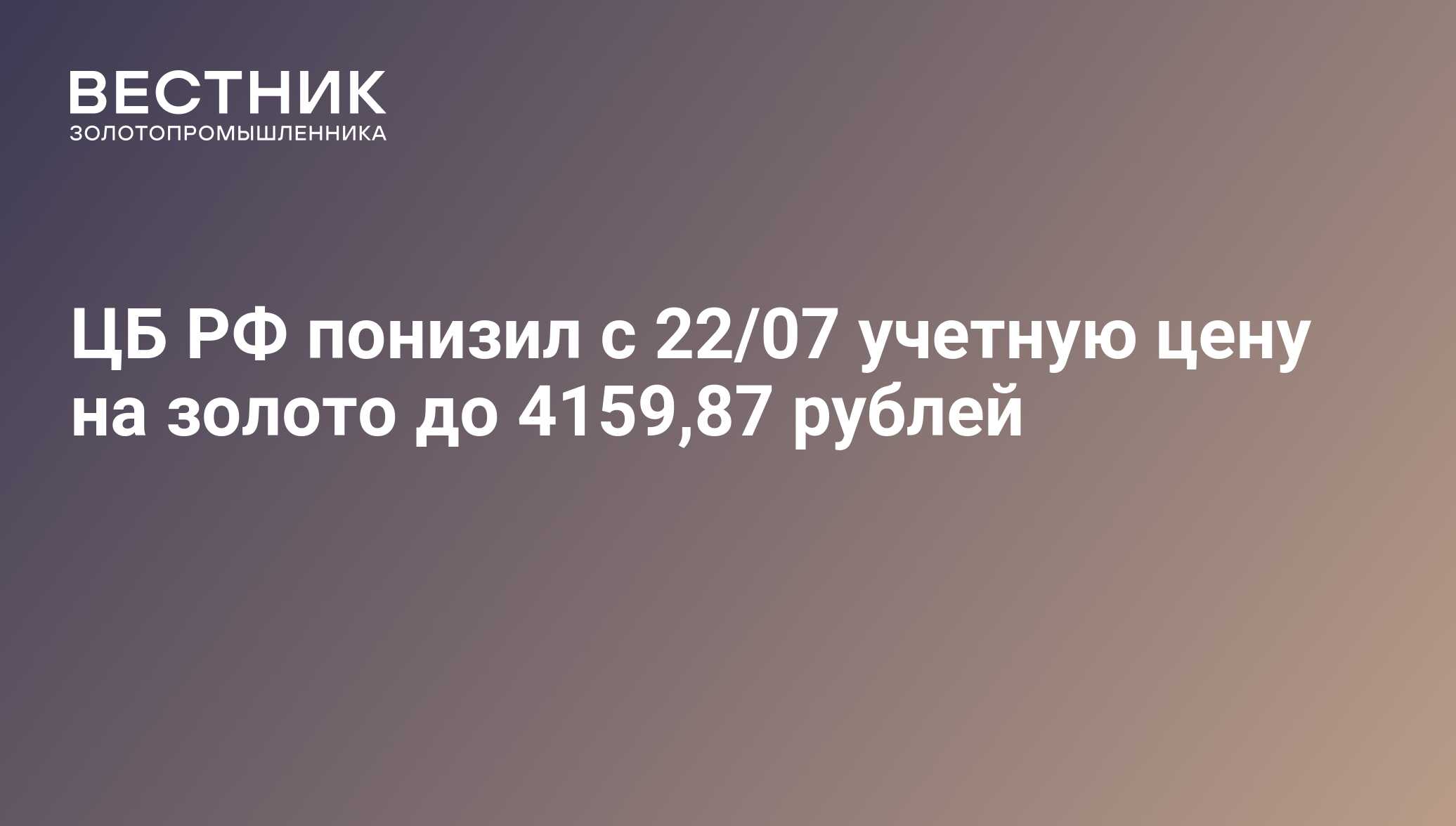 ЦБ РФ понизил с 22/07 учетную цену на золото до 4159,87 рублей