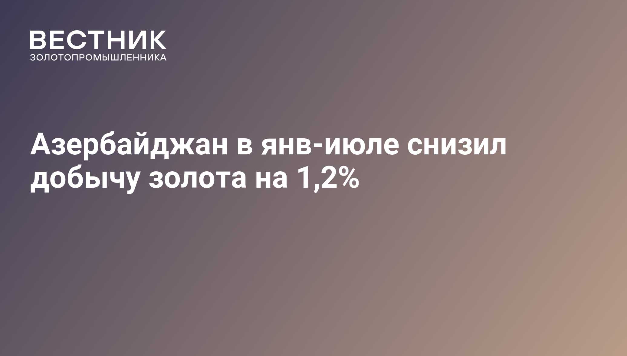 В 2012 году в Азербайджане было добыто около 1,563 тонны золота — на 12% меньше, чем в 2011 году. Добыча золота в стране осуществляется с 2009 года, ежегодный производственный потенциал Азербайджана оценивается в 10-15 тонн драгметалла.