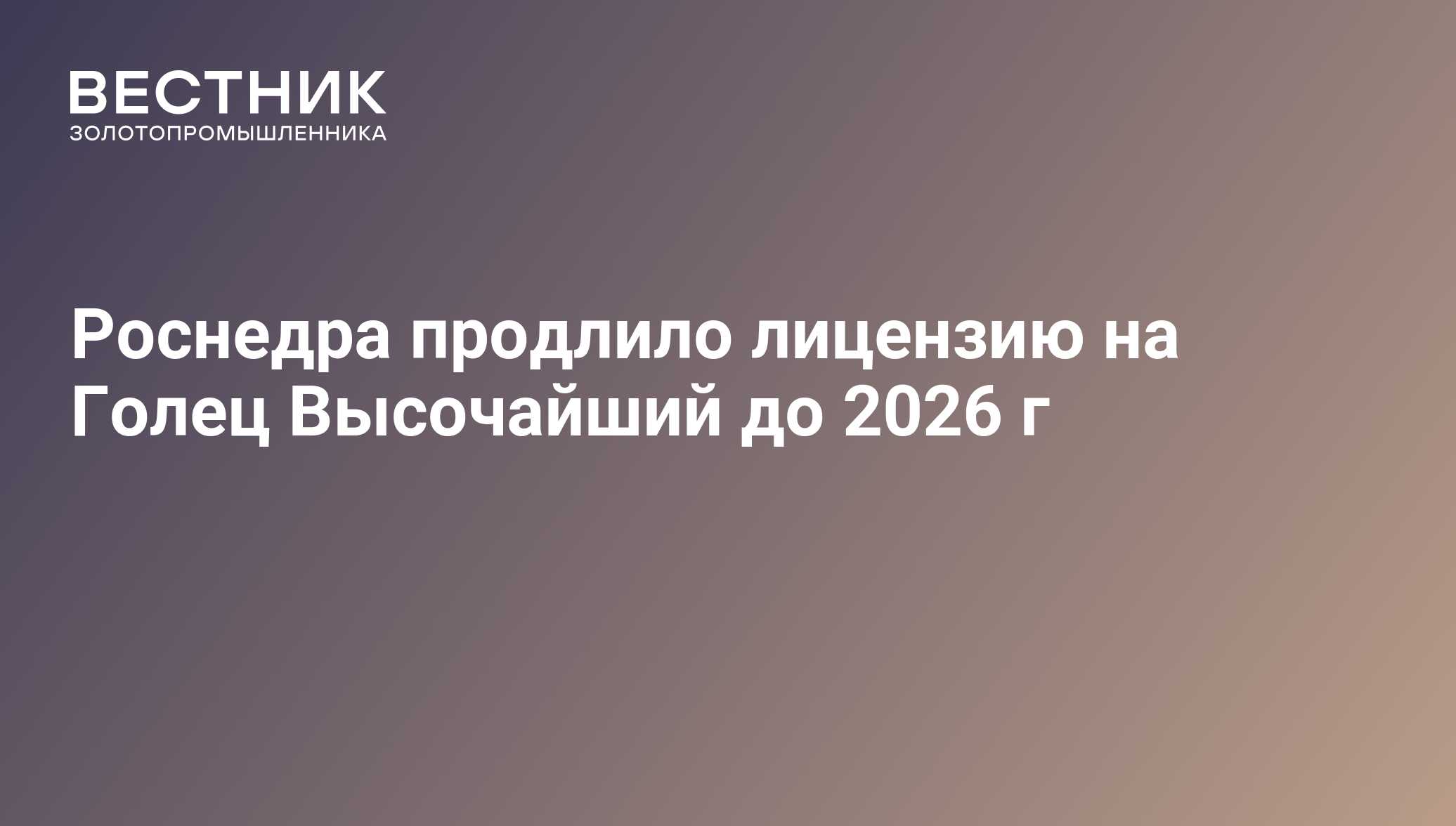 Роснедра продлило лицензию на Голец Высочайший до 2026 г - 26.01.2021, ПРАЙМ ЗОЛОТО