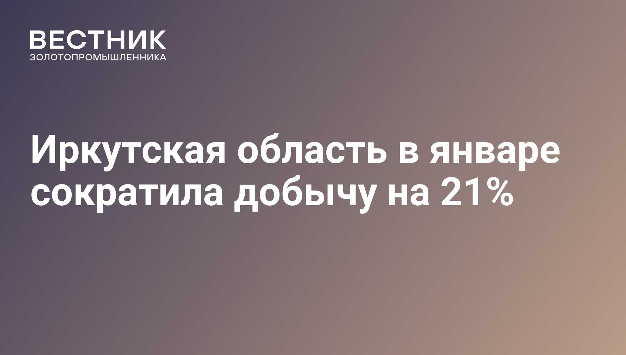 Иркутская область в январе сократила добычу на 21% - 03.02.2021, ПРАЙМ ЗОЛОТО