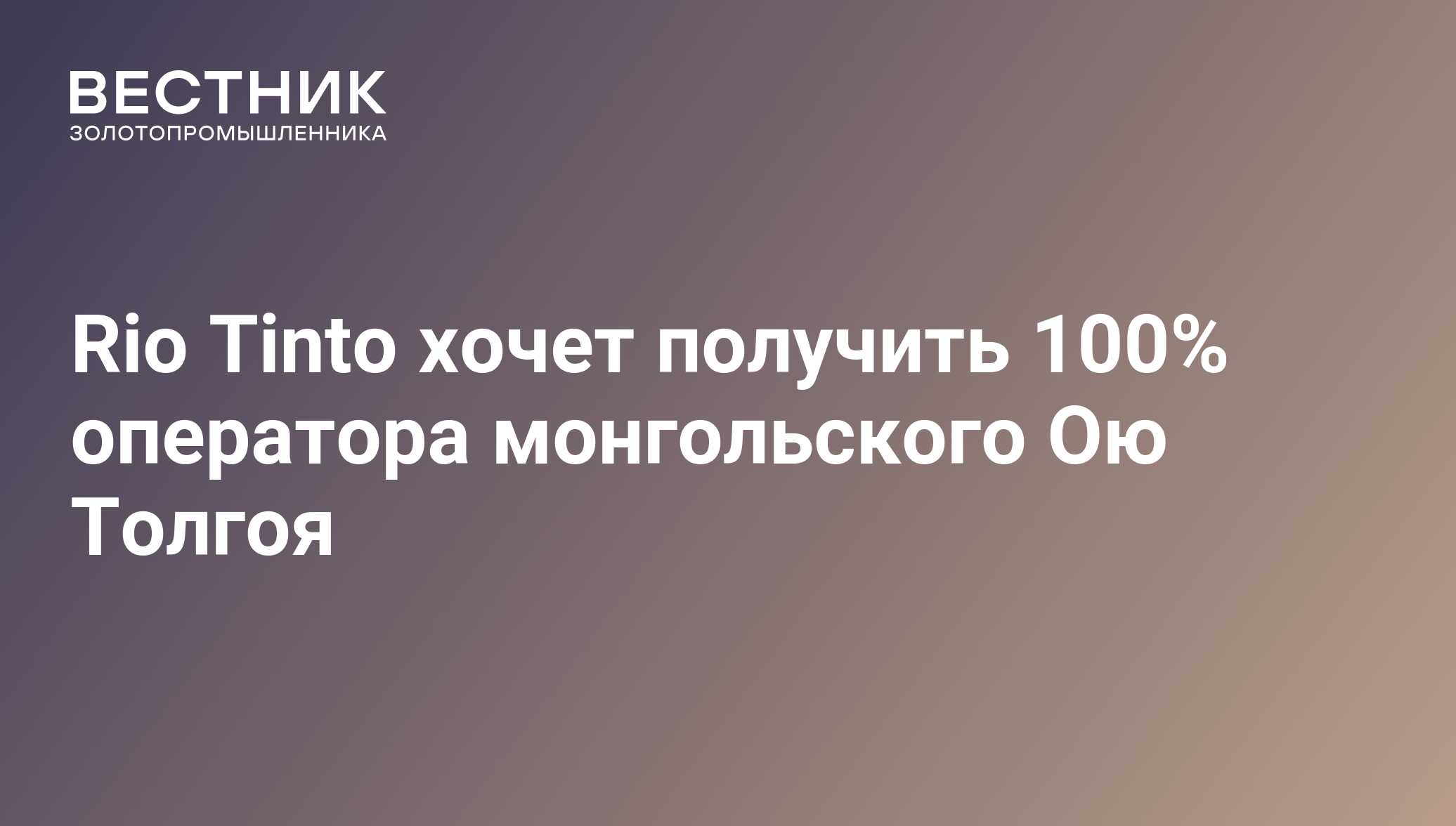 Rio Tinto хочет получить 100% оператора монгольского Ою Толгоя - 14.03.2022, ПРАЙМ ЗОЛОТО