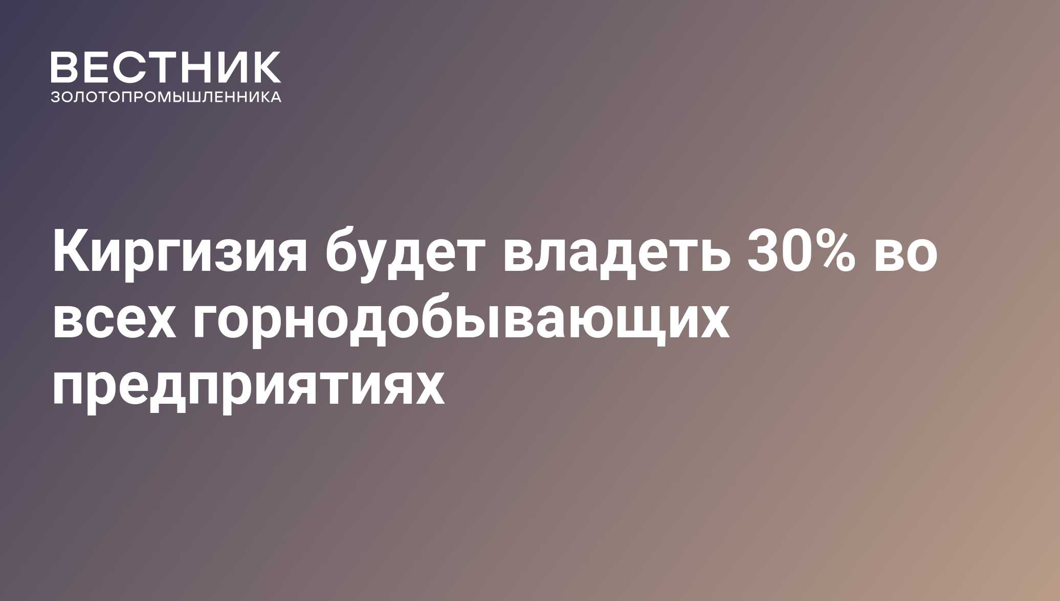 Киргизия будет владеть 30% во всех горнодобывающих предприятиях