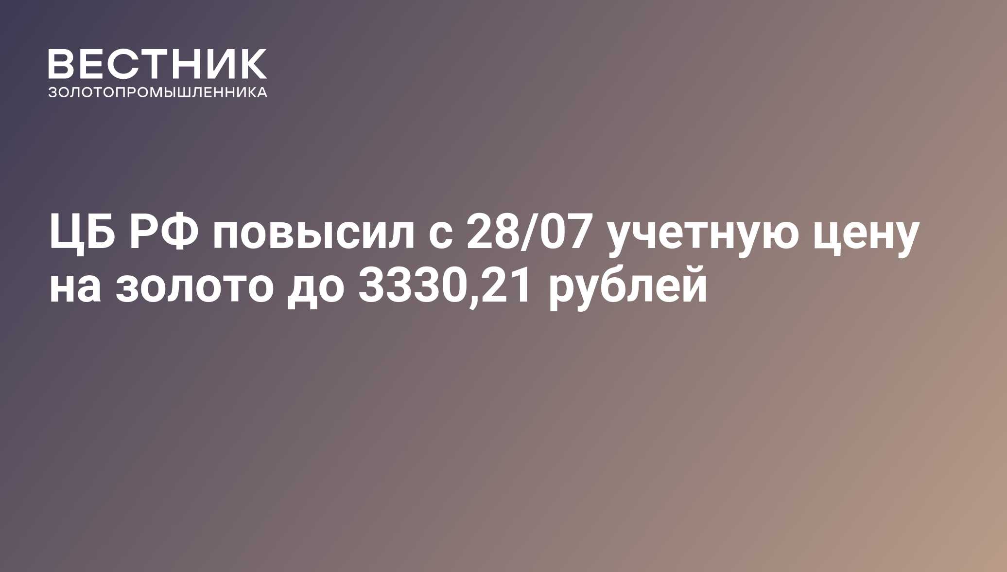ЦБ РФ повысил с 28/07 учетную цену на золото до 3330,21 рублей