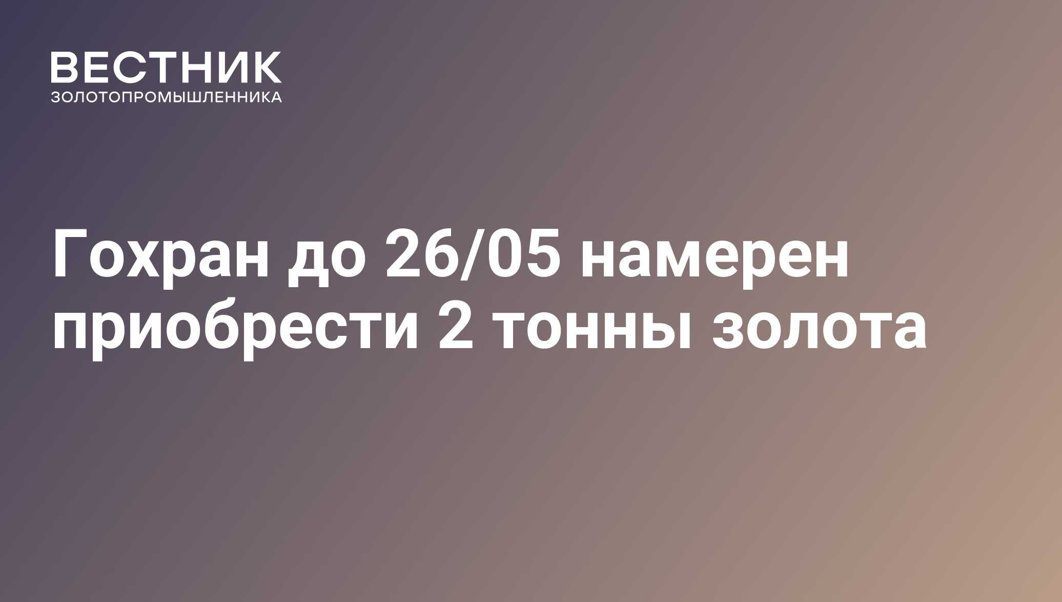 Гохран до 26/05 намерен приобрести 2 тонны золота