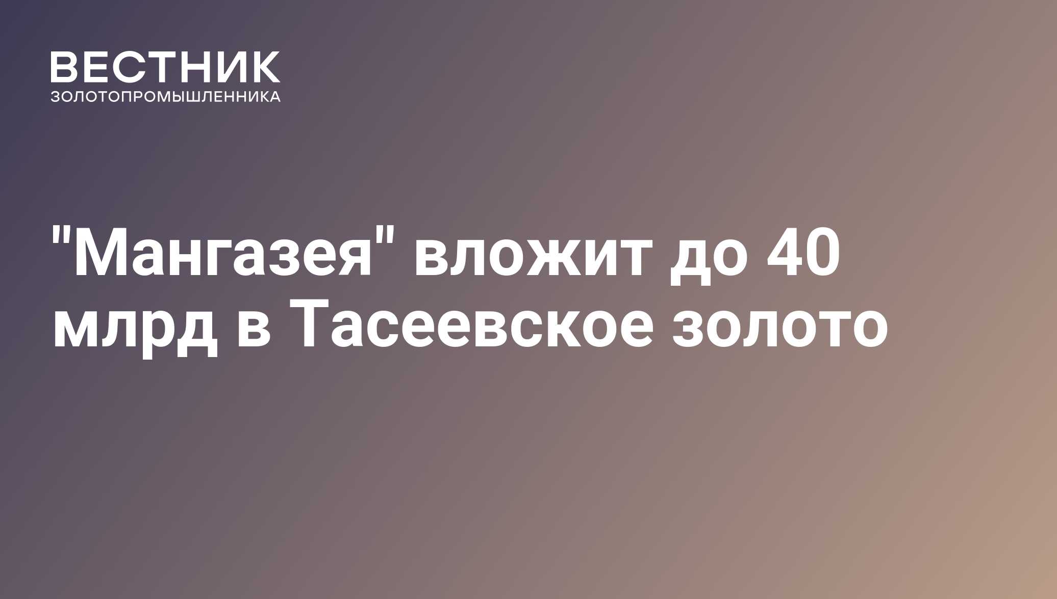 "Мангазея" вложит до 40 млрд в Тасеевское золото