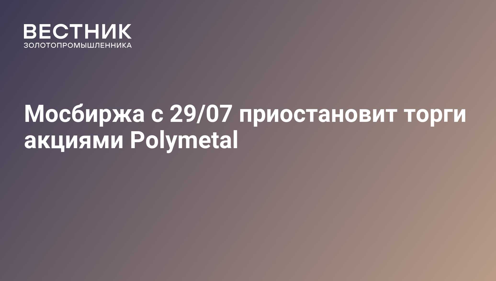 Мосбиржа с 29/07 приостановит торги акциями Polymetal - 19.07.2023, ПРАЙМ ЗОЛОТО
