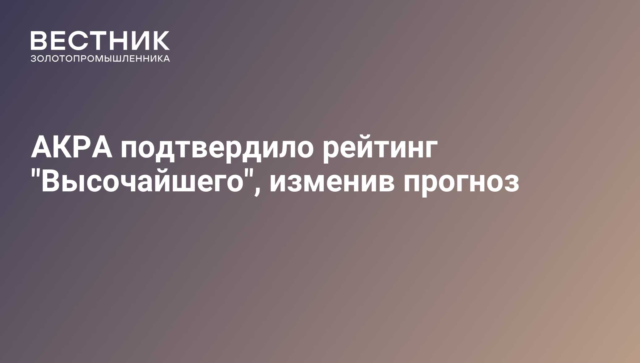 АКРА подтвердило рейтинг "Высочайшего", изменив прогноз - 02.11.2023, ПРАЙМ ЗОЛОТО