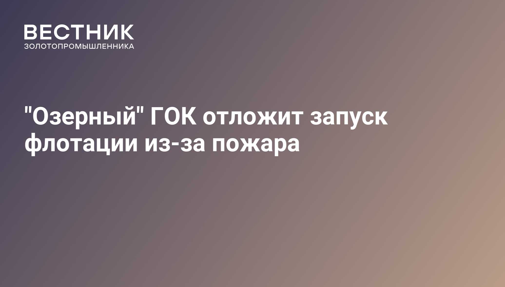 "Озерный" ГОК отложит запуск флотации из-за пожара - 10.11.2023, ПРАЙМ ЗОЛОТО
