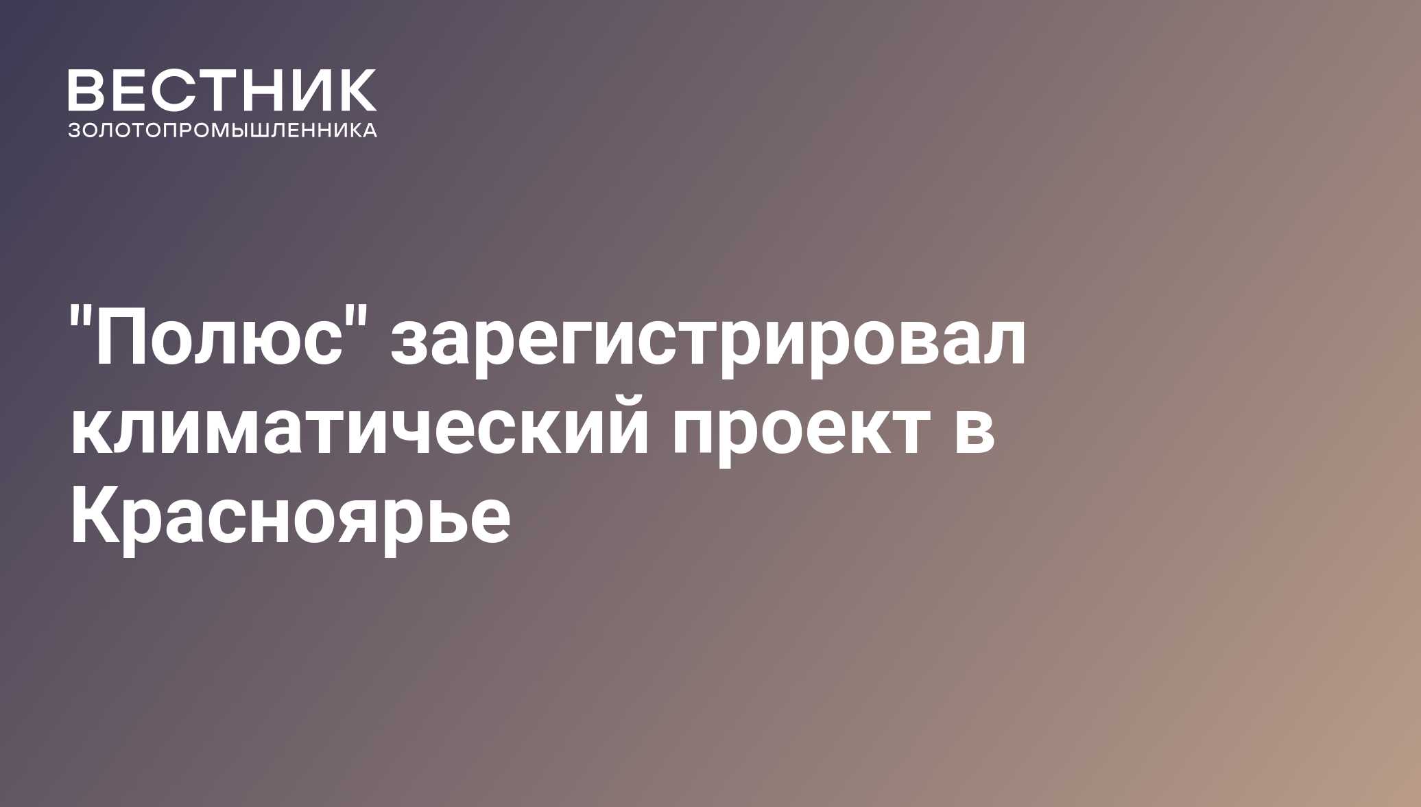 "Полюс" зарегистрировал климатический проект в Красноярье - 13.05.2024, ПРАЙМ ЗОЛОТО