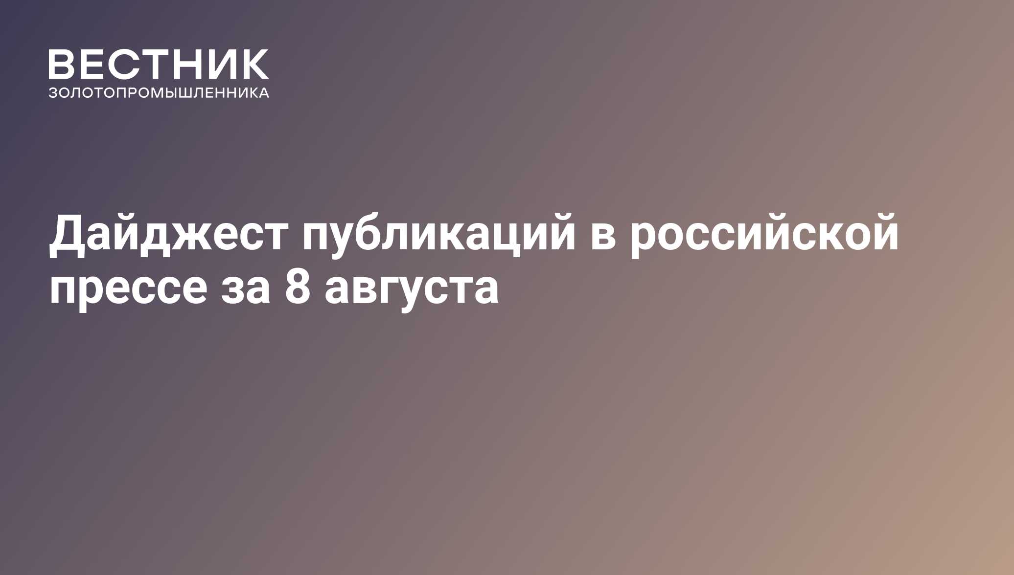 Дайджест публикаций в российской прессе за 8 августа - 08.08.2025, ПРАЙМ ЗОЛОТО