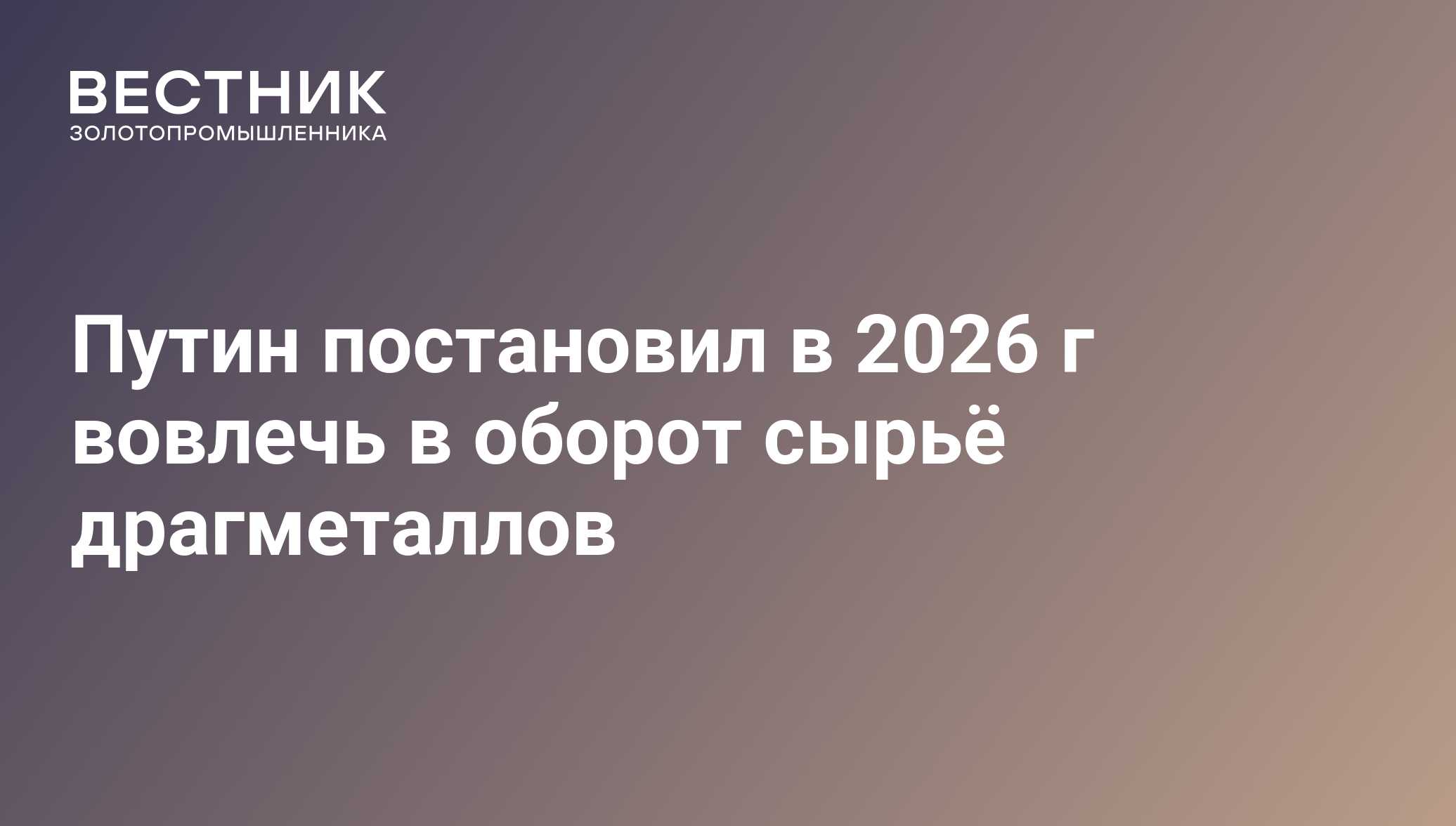 Путин постановил в 2026 г вовлечь в оборот сырьё драгметаллов